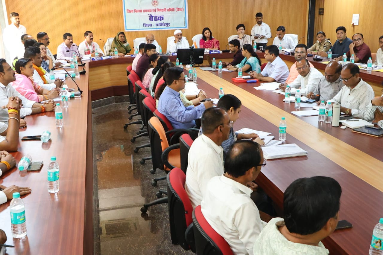 नरसिंहपुर : सांसद चौ. दर्शन सिंह की अध्यक्षता में कलेक्ट्रेट सभाकक्ष में जिला विकास एवं निगरानी समिति- दिशा की बैठक आयोजित हुई। बैठक के दूसरे दिन शिक्षा, खनिज, एनटीपीसी, सड़क परिवहन व राजमार्ग, खाद्य एवं सार्वजनिक वितरण, सामाजिक न्याय एवं दिव्यांगजन सशक्तिकरण विभाग, जिला योजना एवं सांख्यिकी विभाग, खेल एवं युवा कल्याण विभाग, मंडी से संबंधित एवं अन्य विभागों के कार्यों, योजनाओं व उनके क्रियान्वयन और अभियानों की समीक्षा कर संबंधित अधिकारियों को आवश्यक निर्देश दिये।