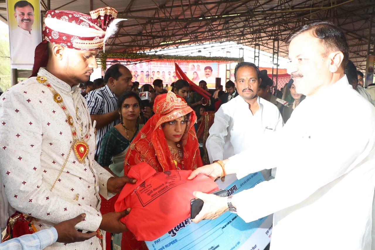 मुख्यमंत्री कन्या विवाह योजना के अंतर्गत परिणय सूत्र में बंधे प्रत्येक जोड़े को गृहस्थी का सामान खरीदने 49 हजार रुपये की राशि के स्वीकृति पत्रों का वितरण भी किया गया। यह राशि परिणय सूत्र में बंधी कन्याओं के बैंक खाते में जमा कराई जायेगी।