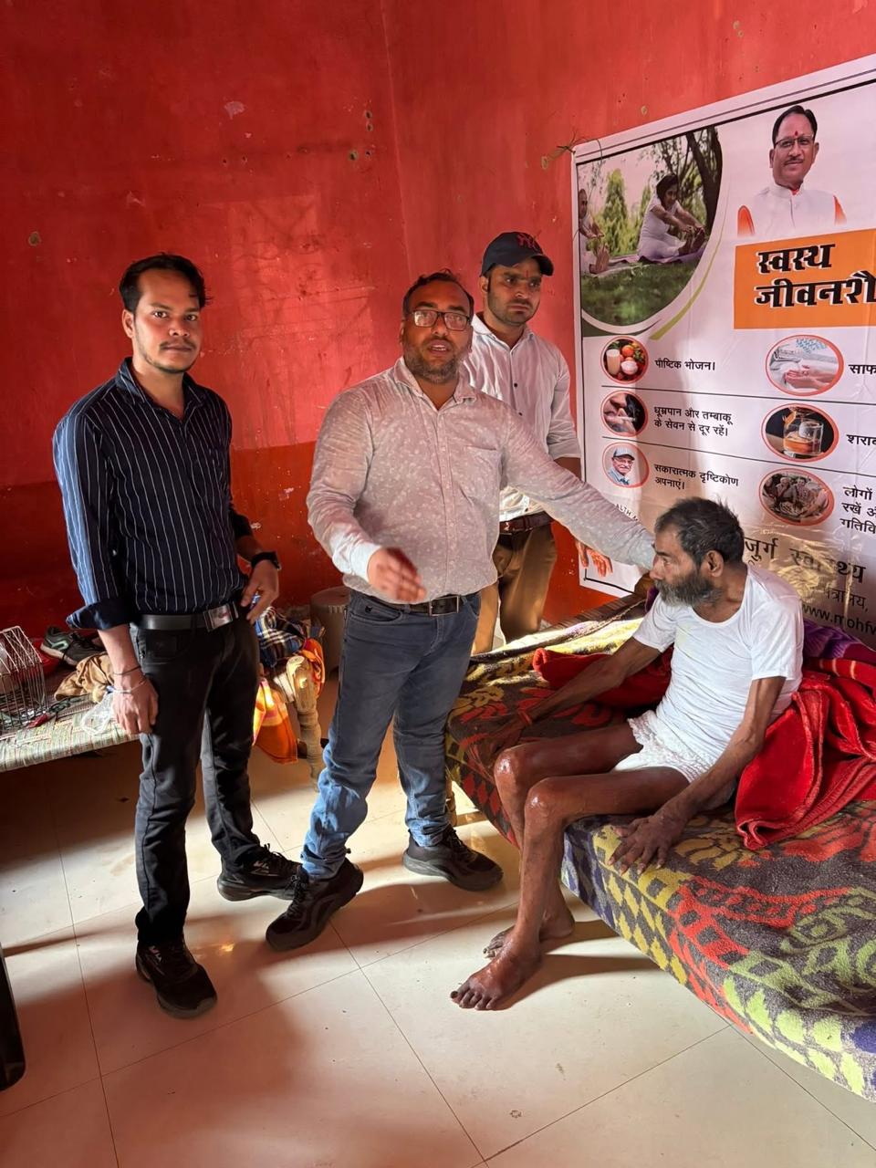 इस अभियान के तहत 80 वर्षीय श्री उग्रनाथ तिवारी के घर पहुंचकर उनका उपचार किया गया। उन्हें कमर दर्द और दाएं पैर को मोड़ने व सीधा करने में कठिनाई हो रही थी। चिकित्सा दल ने फिजियोथेरेपी, पंचकर्म, योग अभ्यास और आवश्यक औषधियों के माध्यम से उनका उपचार किया।