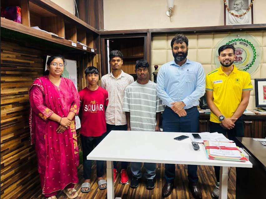 जशपुरनगर : कलेक्टर श्री रोहित व्यास ने जशपुर जिले से राजनांदगांव आवासी खेल अकादमी के लिए चयनित होकर पूरे जिले का नाम रोशन करने पर होनहार खिलाड़ी अर्पण टोप्पो, एरिक नेल्सन और प्रशांत मीन को अपनी शुभकामनाएं देते हुए उनके उज्ज्वल भविष्य की शुभकामनाएं दी
