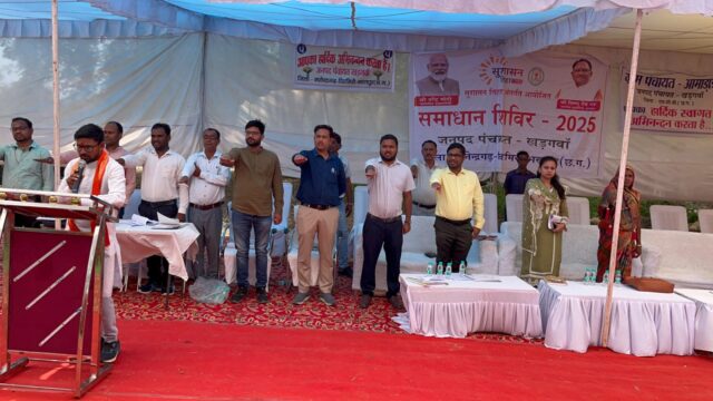 एमसीबी : जिला मनेंद्रगढ़-चिरमिरी-भरतपुर के ग्राम पंचायत आमाडांड में आयोजित समाधान शिविर में लोक स्वास्थ्य यांत्रिकी विभाग द्वारा जल जीवन मिशन के अंतर्गत जल संरक्षण एवं स्वच्छ जल की उपलब्धता पर जागरूकता कार्यक्रम आयोजित किया गया। इस शिविर में विकासखंड खड़गवाँ की 08 ग्राम पंचायत के ग्राम कौड़ीमार, उधनापुर, जडहरी, मेरो, मुकुंदुपुर, कदरेवा, छोटेकुलआ तथा आमाडांड के ग्रामीणों ने भाग लिया। ग्रामीणों को जल संसाधनों के सतत व विवेकपूर्ण उपयोग की जानकारी दी गई और “पानी बचाओ” की सामूहिक शपथ दिलाई गई। सभी उपस्थित ग्रामीणों ने जल संरक्षण के प्रति अपनी प्रतिबद्धता दर्शाते हुए अपने कर्तव्यों के पालन का संकल्प लिया।