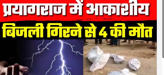 प्रयागराज के बारा थाना क्षेत्र के सोनवर्षा गांव में शनिवार देर रात एक कच्चे मकान पर आकाशीय बिजली गिरने से एक ही परिवार के चार लोगों की मौत हो गई। मृतकों में पति-पत्नी और उनकी दो मासूम बेटियां शामिल हैं ।