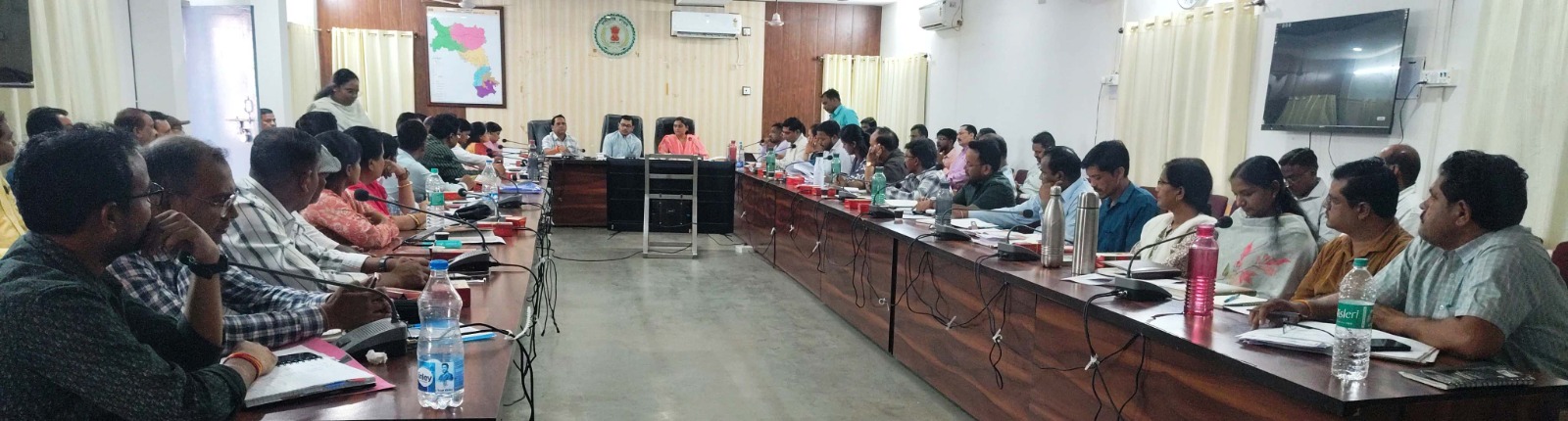 इसके साथ ही शिक्षा और स्वास्थ्य क्षेत्र में डीआईईटी संस्थान, नवोदय विद्यालय की स्वीकृति, बहरासी हाई स्कूल भवन की स्थिति सुधार, खोखनिया में माध्यमिक शाला संचालन, प्रा. शा. गोवत नगर, भरतपुर में हेचरी हेतु अतिरिक्त भूमि आवंटन, खड़गवां संवर्धन केंद्र को हेचरी में रूपांतरण जैसे विषयों पर प्राथमिकता के साथ कार्य करने को कहा गया। वही भरतपुर ब्लॉक में डीसीसीबी की नई शाखा खोलने, ग्रामीण बैंक के स्थानांतरण, कृषि विभाग की योजनाओं, स्वायल हेल्थ फर्टिलिटी योजना, खेलो इंडिया लघु केंद्रों की स्थापना और कौशल विकास प्रशिक्षण के कार्यों की समीक्षा करते हुए शीघ्र प्रस्ताव भेजने के निर्देश दिए गए। इसके साथ ही स्वनिधि से समृद्धि कार्यक्रम, पीएम स्वनिधि योजना, ई-श्रम पोर्टल पर पंजीकृत श्रमिकों को राशन कार्ड उपलब्ध कराने की कार्यवाही एवं कौशल विकास प्राधिकरण के गठन के विषय में भी आवश्यक दिशा-निर्देश प्रदान किए गए। वहीं सूचना का अधिकार अधिनियम अंतर्गत जन सूचना अधिकारियों का पोर्टल में पंजीयन, ईमेल आईडी अपडेट, वोटर आईडी, आधार कार्ड, पासपोर्ट में एमसीबी जिले का नाम अपडेट करने हेतु विभागों को त्वरित कार्यवाही के निर्देश दिए गए । साथ ही मुख्यमंत्री जनदर्शन, पीएम पोर्टल एवं ई-समाधान पोर्टल में लंबित प्रकरणों के निराकरण के लिए भी अधिकारियों को निर्देशित किया गया। इस बैठक में बैठक में वन विभाग की लंबित सड़क निर्माण योजनाएं, नए आंगनबाड़ी भवनों का हैंडओवर, रामगढ़ में नया आंगनबाड़ी भवन, स्कूलों के बोरवेल मरम्मत, छात्रावासों की मरम्मत, चिमटीमार बैगापारा में घटिया निर्माण सामग्री की जांच, चतुर्थ श्रेणी कर्मचारियों को समयमान वेतनमा, ग्रेच्युटी एवं नगदकरण संबंधी प्रकरणों के साथ पुराने पेंशन प्रकरणों को प्राथमिकता से निराकरण करने हेतु निर्देश दिए गए। औद्योगिक क्षेत्र परसगढ़ी में अतिक्रमण हटाने, गोंडवाना फॉसिल्स पार्क का प्रस्ताव भारत सरकार को भेजने, नेटवर्क विहीन क्षेत्रों में बीएसएनएल व जिओ के टॉवर लगवाने, वन अधिकार पट्टा वितरण और ऑनलाइन एंट्री के कार्यों की भी समीक्षा की गई। इस बैठक में जिला पंचायत सीईओ श्रीमती अंकिता सोम शर्मा, संयुकत कलेक्टर सी.एस. पैकरा, एसडीएम शशि शेखर मिश्रा, विजेंद्र सारथी, प्रितेश राजपूत सहित सभी तहसीलदार, जनपद पंचायत सीईओ, नगर पंचायतों के सीएमओ एवं समस्त विभागों के अधिकारी एवं कर्मचारी उपस्थित थे।