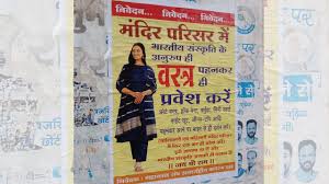 जबलपुर में हिंदू संगठनों ने मंदिरों में पारंपरिक वस्त्र पहनने की अपील करते हुए पोस्टर लगाए हैं। इन पोस्टरों में महिलाओं और पुरुषों से भारतीय संस्कृति के अनुरूप कपड़े पहनने का अनुरोध किया गया है। इन पोस्टरों में छोटे वस्त्र, हाफ पैंट, बरमूडा, मिनी स्कर्ट, नाइट सूट, जींस-टॉप जैसे पश्चिमी परिधानों पर आपत्ति जताई गई है। यह अभियान सांस्कृतिक जागरूकता बढ़ाने का प्रयास है, न कि प्रतिबंध, कुछ लोगों ने इसका स्वागत किया है जबकि कुछ ने इसे व्यक्तिगत स्वतंत्रता का उल्लंघन बताया है।