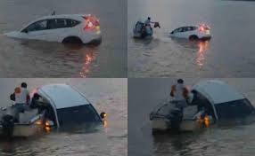 राजधानी पटना के दीघा थाना क्षेत्र स्थित मीनार घाट पर शुक्रवार को एक बड़ा हादसा हो गया, जब एक नई कार अनियंत्रित होकर गंगा नदी में समा गई। कार में पति-पत्नी सवार थे। लेकिन घाट पर मौजूद नाविकों की तत्परता और बहादुरी के कारण दोनों की जान बच गई। घाट पर मौजूद नाविकों ने करीब 45 मिनट की मशक्कत के बाद दोनों को सुरक्षित बाहर निकाल लिया। नाविकों की इस बहादुरी और तत्परता की हर कोई प्रशंसा कर रहा है।