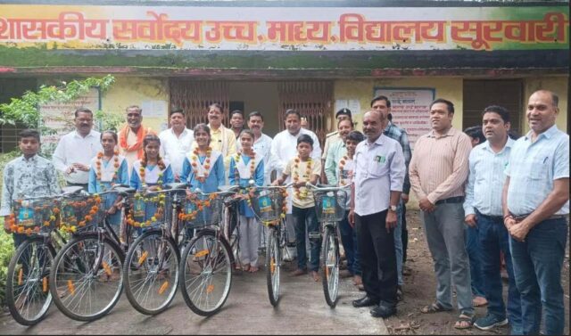 नरसिंहपुर : विधायक श्री महेन्द्र नागेश की अध्यक्षता में गोटेगांव विकासखंड स्तरीय शासकीय सर्वोदय उच्चतर माध्यमिक विद्यालय सूरवारी में विद्यार्थियों को नि:शुल्क साईकिलों का वितरण किया। साथ ही गुरू पूर्णिमा के अवसर पर गुरूजनों का सम्मान किया और एक पेड़ मां के नाम अभियान के तहत पौधरोपण किया।