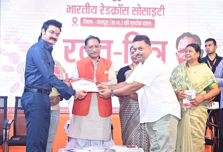 जशपुरनगर : मुख्यमंत्री श्री विष्णु देव साय ने कैम्प कार्यालय बगिया में भारतीय रेडक्रॉस सोसायटी जशपुर के आजीवन सदस्यों को प्रमाण पत्र वितरित किया और रक्त मित्र पुस्तिका का भी विमोचन किया।