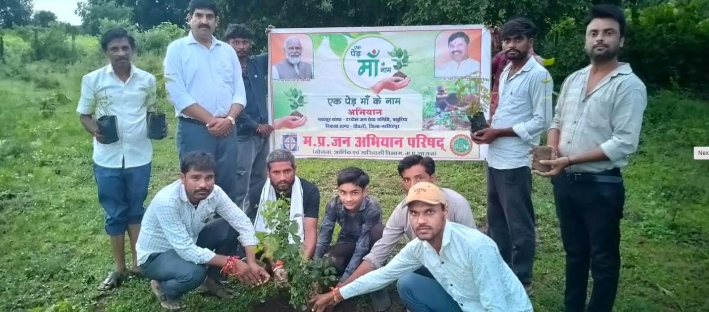 नरसिंहपुर : राज्य शासन के निर्देशानुसार एक पेड़ मां के नाम अभियान के तहत जिले में पौधरोपण का कार्य किया जा रहा है। इसी क्रम में मप्र जनअभियान परिषद नरसिंहपुर की संस्थाओं द्वारा शासकीय रेशम केन्द्र रहमा व ग्राम पलेरा में पौधरोपण का कार्य किया गया।