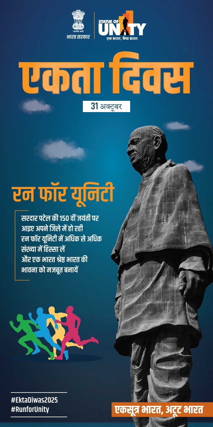 एमसीबी : जिले में हर वर्ष के भाती इस वर्ष भी राष्ट्रीय एकता दिवस के अवसर पर एकता, अखंडता और भाईचारे का प्रतीक “रन फॉर यूनिटी” का भव्य आयोजन किया जा रहा है। भारत के लौह पुरुष सरदार वल्लभभाई पटेल की 150वीं जयंती पर आयोजित यह एकता दौड़ जिले में देशभक्ति और राष्ट्रीय समरसता की नई ऊर्जा का संचार करेगी। यह दौड़ 31 अक्टूबर 2025 को सुबह 7:00 बजे भगत सिंह तिराहा, मनेंद्रगढ़ से प्रारंभ होकर परेड ग्राउंड, अमाखेरवा में संपन्न होगी।